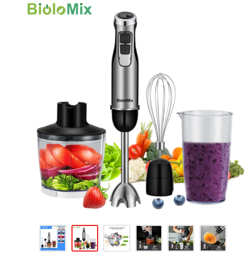 Biolomix 4 em 1 de alta potência 1200w imersão mão vara misturador liquidificador inclui chopper e smoothie copo lâminas de gelo aço inoxidável